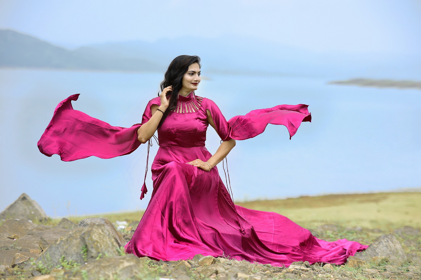 Long-sky-blue-pre-wedding-outfit