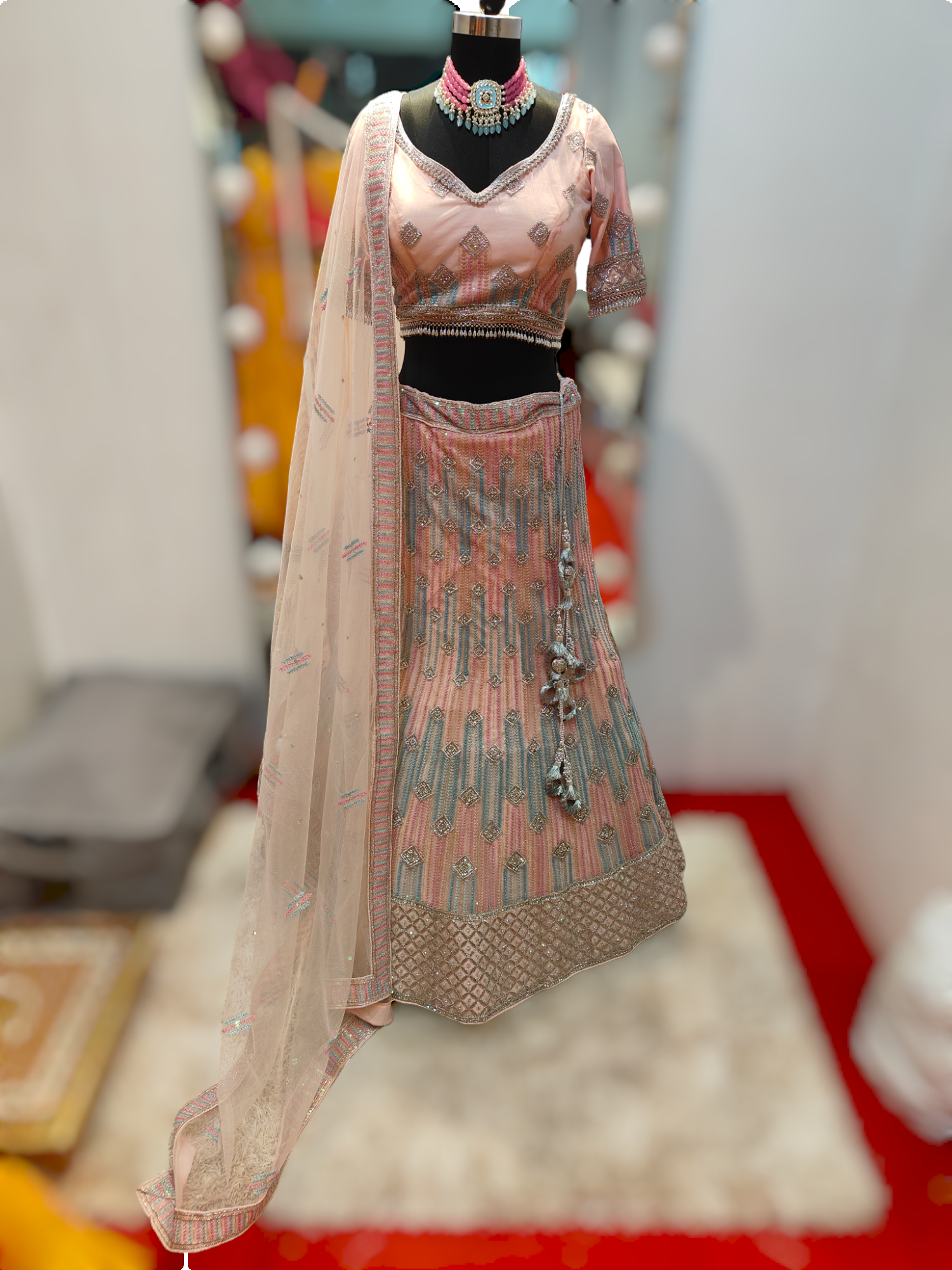 Be the first to review “Pastel shade silver heavy work designer lehenga” Cancel reply